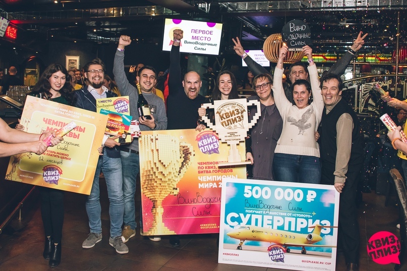 Как вы уже наверняка знаете, Чемпионом мира по Квиз, плиз! стала сборная Москвы и команда #ВиноВодочные_Силы! С чем мы их и поздравляем. А крутым победителям — крутые подарки. И эти ребята собрали, кажется, вообще всё: сертификат на 5к в баре; промокоды на книги от издательства «Манн, Иванов и Фербер»; сертификаты на приобретение дизайнерских ковров в шоу-руме Decor Magic; проходка на игры Квиз, плиз! на целый год; ну и конечно сертификат на 500к на авиабилеты в любую точку мира от нашего Генерального партнёра, компании «Столото». Вторыми в этой нелегкой битве пришли #7.13! Не знаем, как вам это удалось, но восхищаемся. И награждаем соответствующе: сертификаты на приобретение дизайнерских ковров в шоу-руме Decor Magic; полугодовой абонемент в Крокус-фитнес; промокоды на книги от издательства «Манн, Иванов и Фербер»; проходка на следующую игру Квиз, плиз! Вчера вечер удался и у команды #Голодные_игры. Они вскочили на третью ступень нашего пьедестала! Не считая того, что в целом здорово провели время и получили классные призы: огромный набор настольных игр от Cosmodrom Games; промокоды на книги от издательства «Манн, Иванов и Фербер»; и конечно маленечко алкоголя, чтобы отпраздновать призовое место. #Мансарда_13 решили показать всем, какие они крутые. И показали — стали четвертыми! Ещё и получили за это всякого: 2 настолки от Cosmodrom Games; подарок от ToDoBox; промокоды на книги от издательства «Манн, Иванов и Фербер»; бУхлИшКо. Передаем поздравления команде #Братья_по_умолчанию! Они стали пятыми, а такое без внимания и без подарков оставаться не должно. И не осталось: настолка от Cosmodrom Games; подарок от ToDoBox; промокоды на книги от издательства «Манн, Иванов и Фербер». Вчера #Последний_сон_Менделеева умопомрачительно сыграли в Квиз, плиз!, а после угостились алкоголем за наш счёт и получили подарки: настолка от Cosmodrom Games; промокоды на книги от издательства «Манн, Иванов и Фербер». Кроме этого все оставшиеся команды, которые внесли вклад в победу сборной Москвы в Чемпионате (это места с 6 по 15), получили промокоды на книги от издательства МИФ. Вот эти герои: #Похоронное_бюро #Родные_шпинаты #Если_не_мы_то_кот #Скамейка_запасных #Жиробарсики #Енот_да_не_тот #Команда_Воронова #Чай_вдвоём_секс_втроём и #Енот_Why_Not. В финале участвовали 99 команд из Москвы и Новосибирска, средние баллы и сводная таблица Чемпионата ниже: Москва — 47,13 Новосибирск — 44,7 Хочется особенно отметить команду #Фасолинки из Новосибирска — вы круто сражались, респект! Спасибо всем городам-участникам Чемпионата, всем, кто был с нами, поддерживал, болел и главное — играл. Гордимся вами.